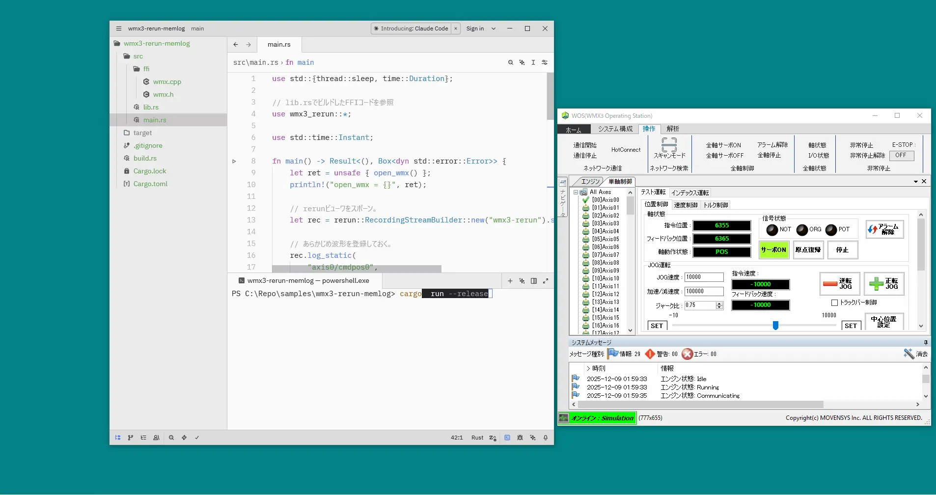 実行するには、wmx3-rerun-memlogでcargo runします。
